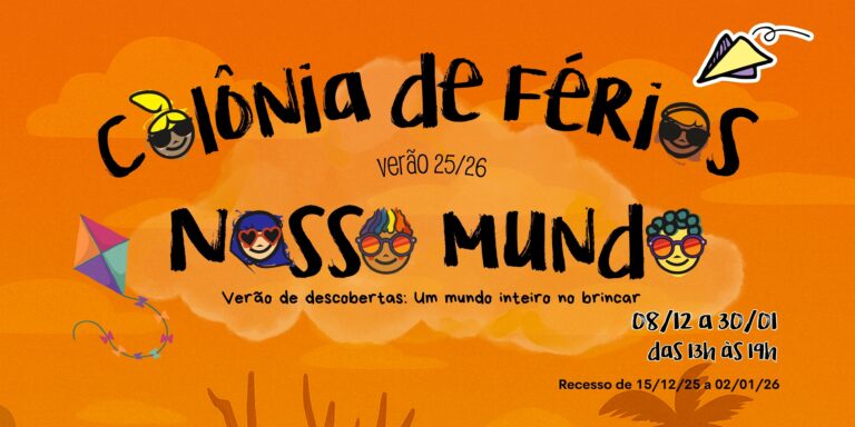 A Colônia de Férias Nosso Mundo proporciona às crianças um tempo para brincar e relaxar. Ela é planejada para oferecer uma pausa na rotina escolar, permitindo que as crianças vivam experiências lúdicas e divertidas. Muita brincadeira, banho de mangueira, momentos livres e de descanso, além de música, arte, cultura e diversão, farão parte do nosso dia a dia!